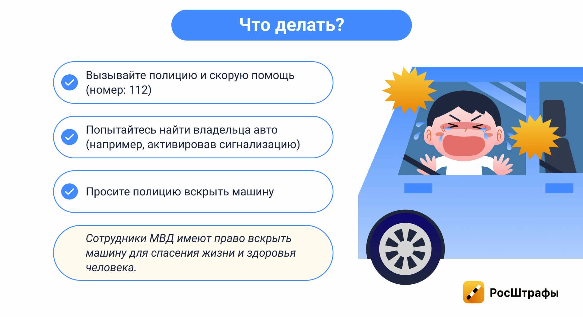 Это значит, что если ребенку действительно угрожает опасность, например, у малыша наблюдаются признаки удушья, наступает ситуация крайней необходимости. Однако решать, законно ли поступил спасающий человек, вскрывший авто, все же будет решать суд. Поэтому подготовьте обоснования для своих действий.